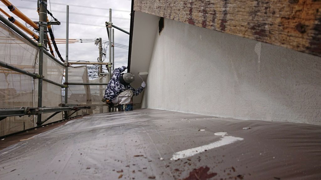 軒天にシミやハガレがあるなら屋根点検をして雨漏りの形跡がないか調べる。あれば足場を組んで屋根修理(葺き替え、屋根カバー工法)、雨樋交換と一緒に軒天の工事も行う。