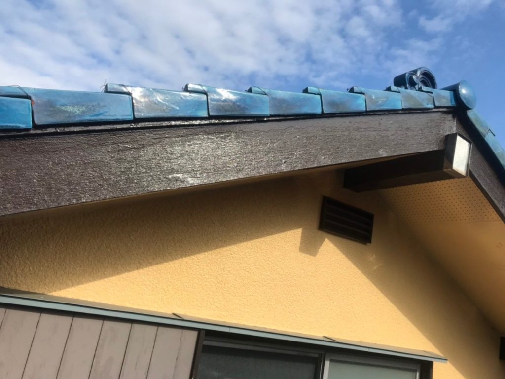 世田谷区で瓦の補修をしたついでに破風の塗装が剥がれていたので、余った塗料で塗装しました。