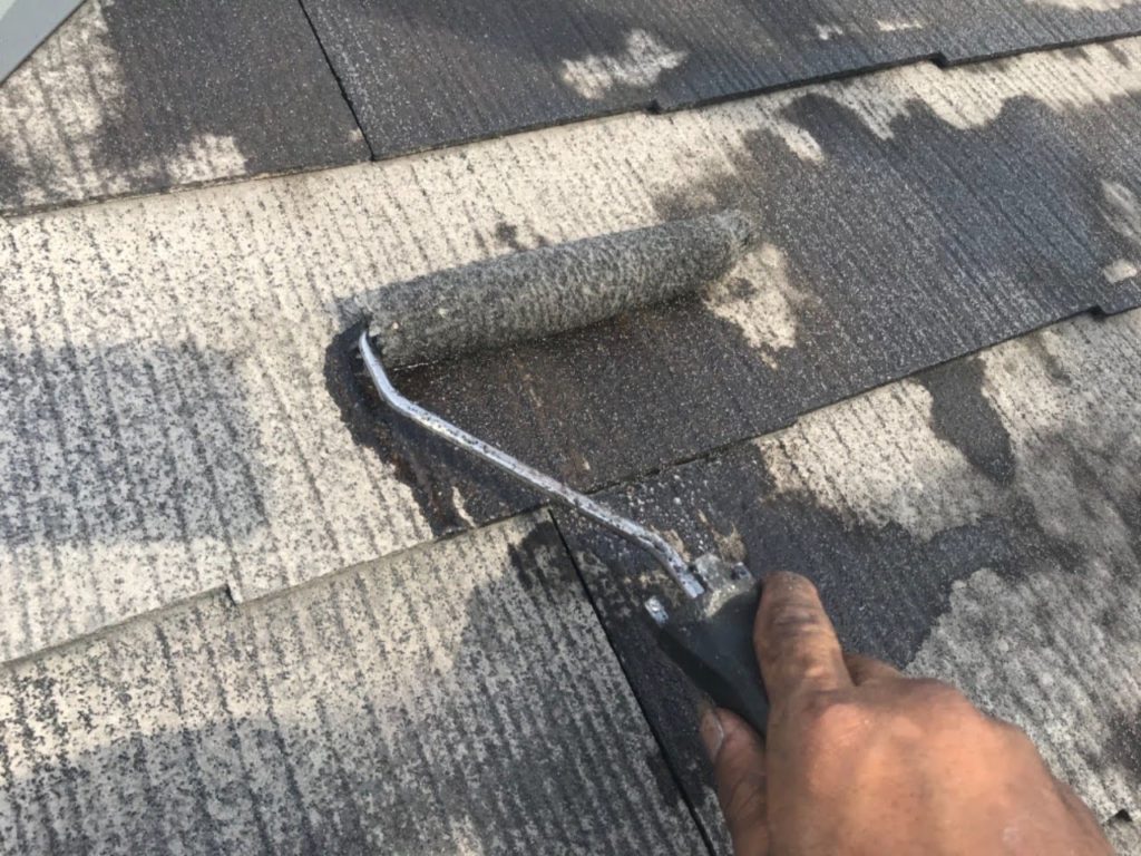 シリコン系の溶剤の塗料で屋根塗装しました。